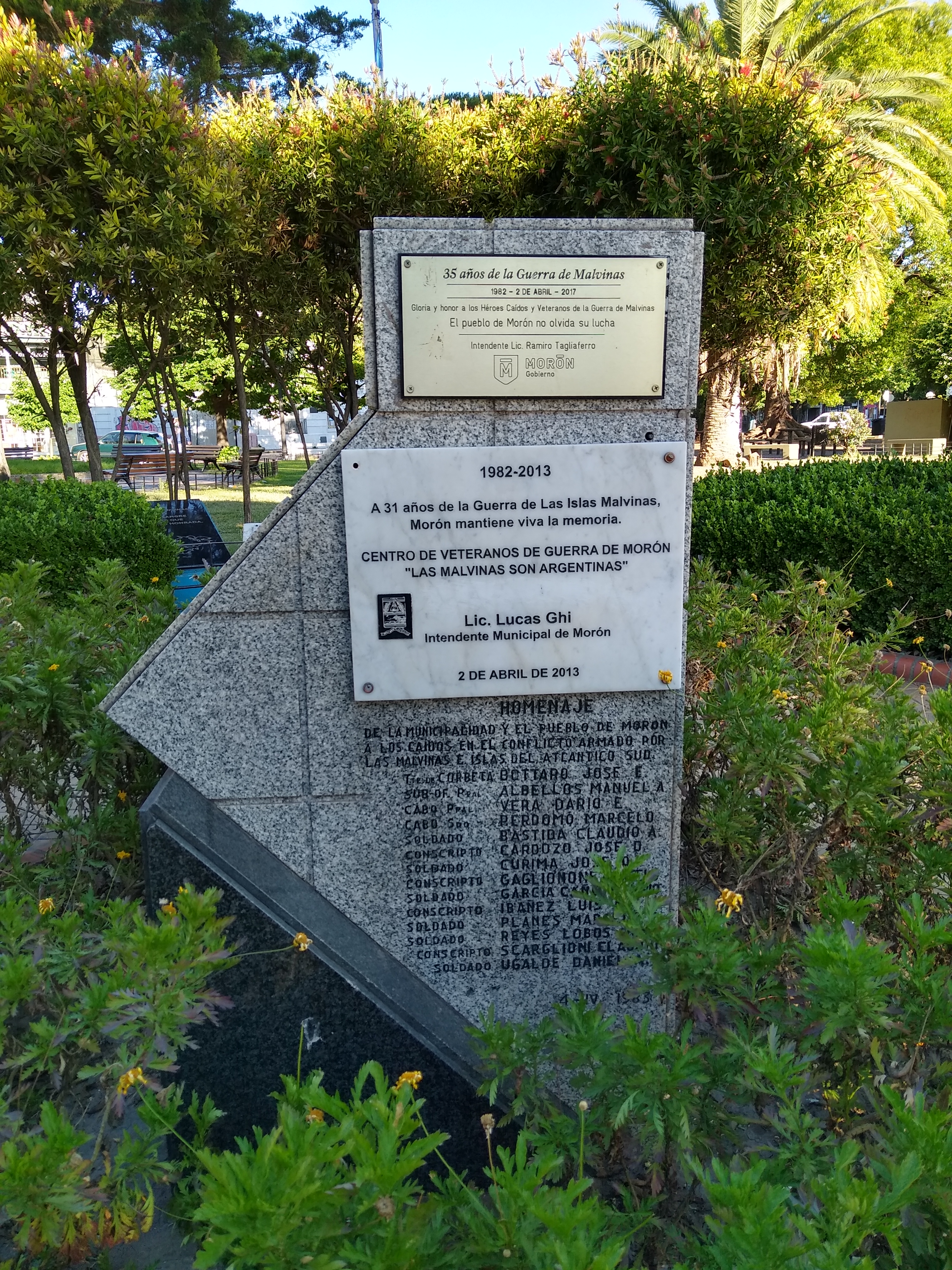 Colección Fotografías de monumentos sobre ex combatientes de Malvinas, como parte del proyecto de “Archivo audiovisual de experiencias de Malvinas” radicado en el Programa de Estudios de Malvinas, Atlántico Sur y Patagonia (PEMAP) de la UNAJ. La colección consta de fotografías de tres monumentos históricos ubicados en Morón (Buenos Aires), Pilar (Córdoba) y Río Grande (Tierra del Fuego) capturadas por Sebastián Federico Paris. Monumento a los Ex Combatientes de Malvinas de la Ciudad de Pilar (Córdoba) Monumento a los Ex Combatientes de Malvinas (Plaza del Libertador General San Martín, Morón) Monumento a los Ex Combatientes de Malvinas (Río Grande)